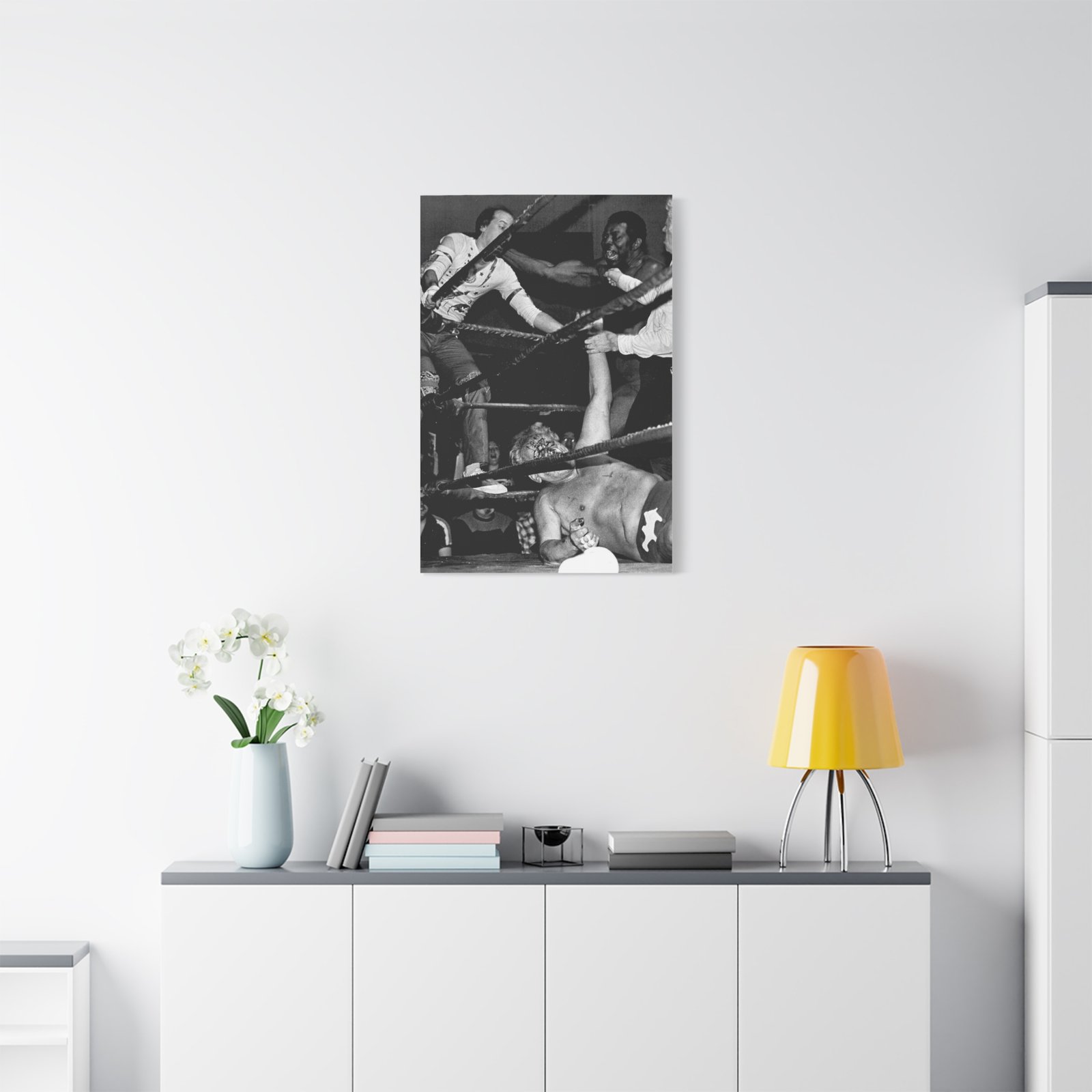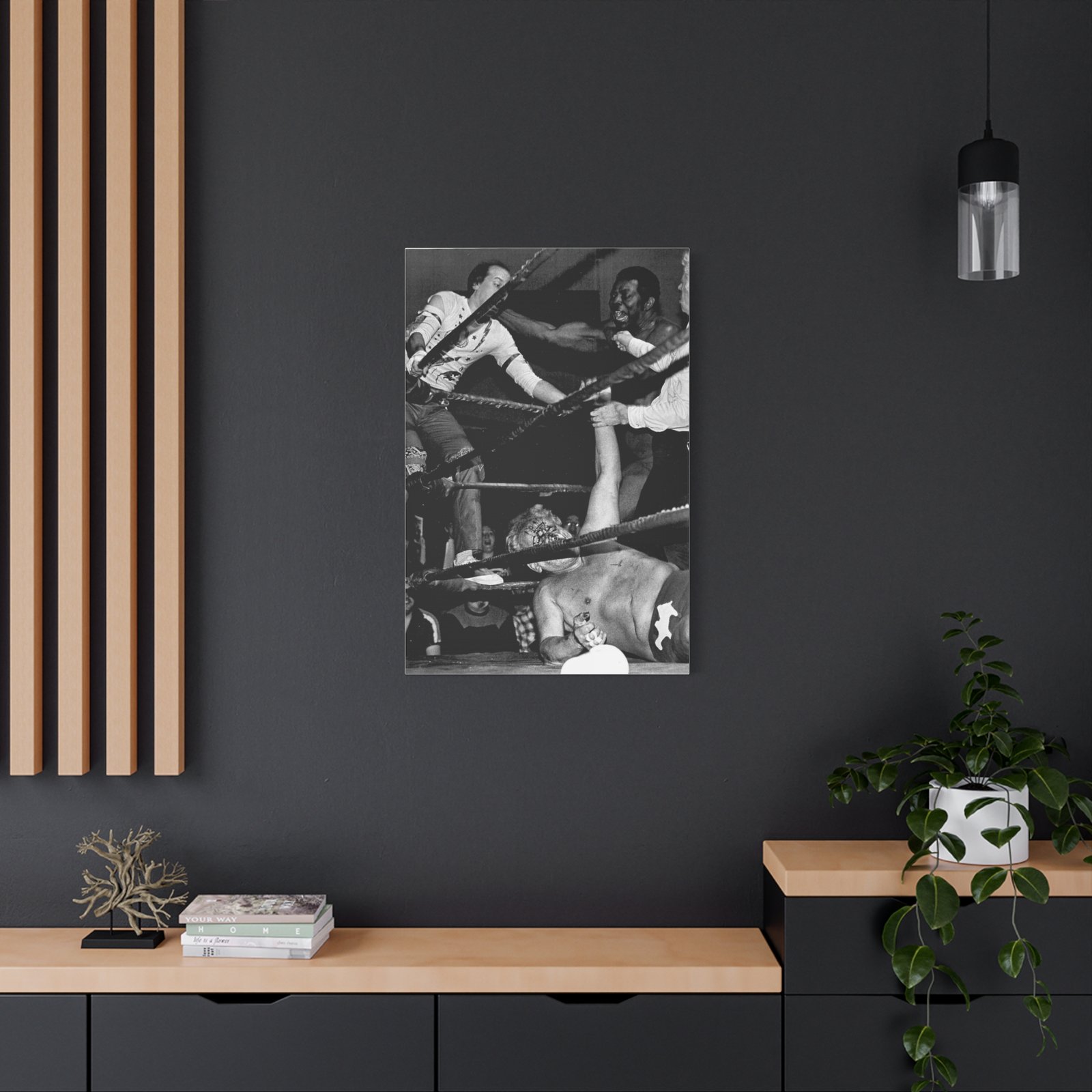 This Throwdown Theatre EXCLUSIVE is for hardcore fans who live and breathe classic wrestling—a statement piece for your man cave, studio, or collection. No fluff. No filters. Just pure wrestling history in a one-of-a-kind black-and-white warzone.