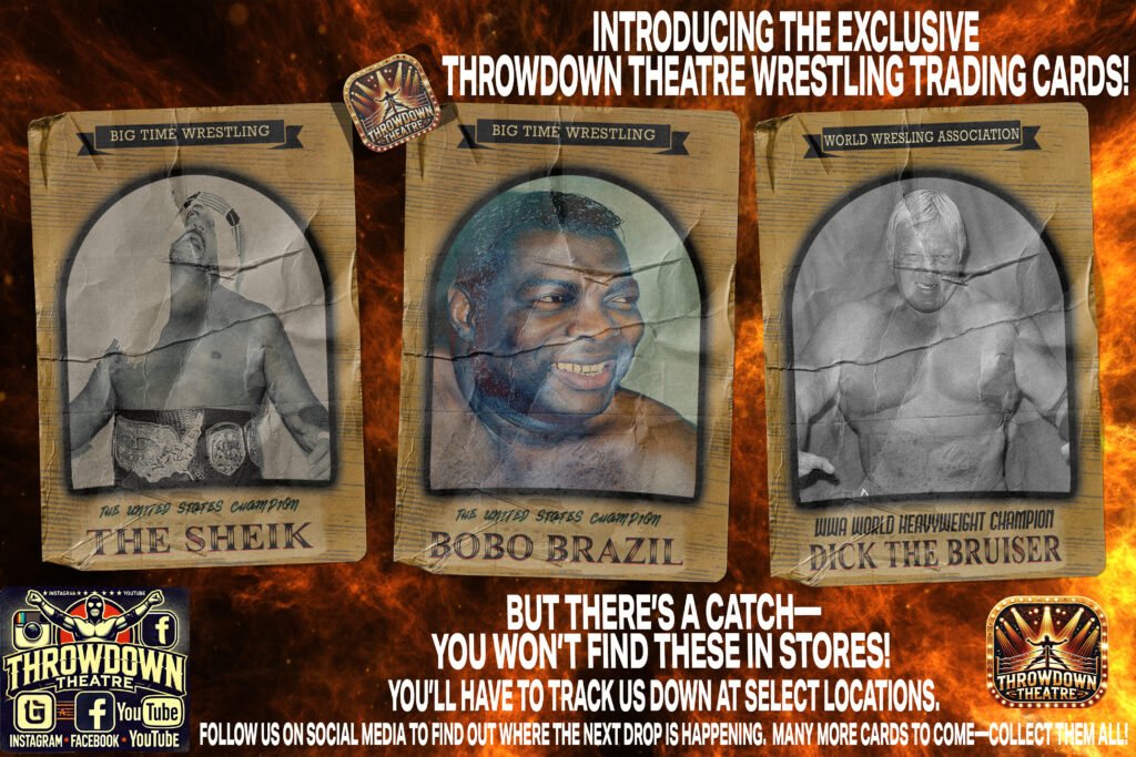 Throwdown Theatre is more than a YouTube channel—it’s a movement to preserve the blood, sweat, and glory of professional wrestling’s roots. Our trading cards are just one piece of that mission.